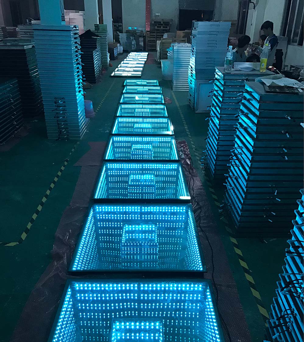 1m x 1m large panel with nested 3D design. Uses high-strength tempered glass and precision LED alignment for a deep infinity effect.