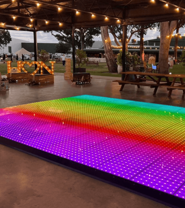 A Pixel LED dance floor uses panels with individually addressable LEDs to display custom text, logos, animations and patterns — often called a pixel dance floor or led pixel dance floor.