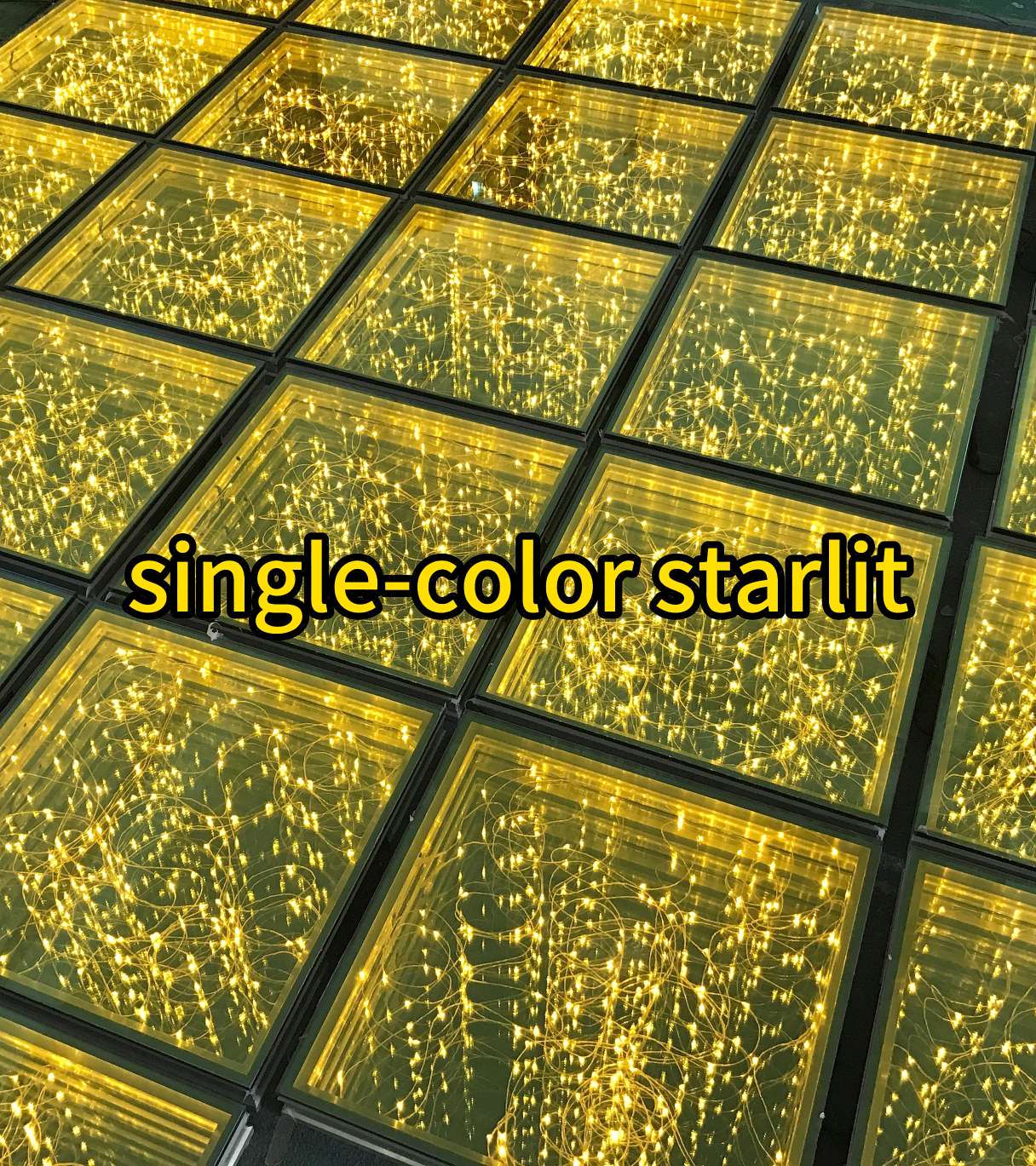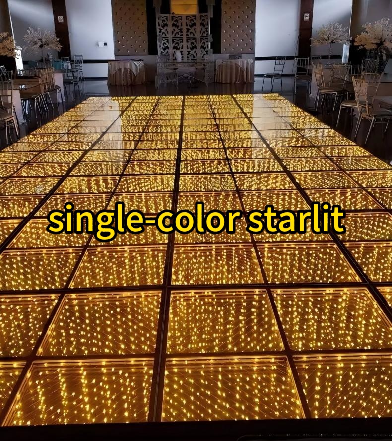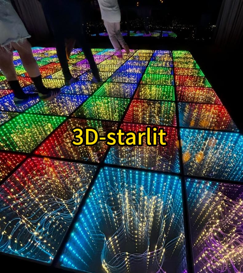 For weddings, pair the 3D starlit with a floral LED floor for a romantic first-dance stage. For high-energy events, combine interactive starlit panels with full-color effects.
