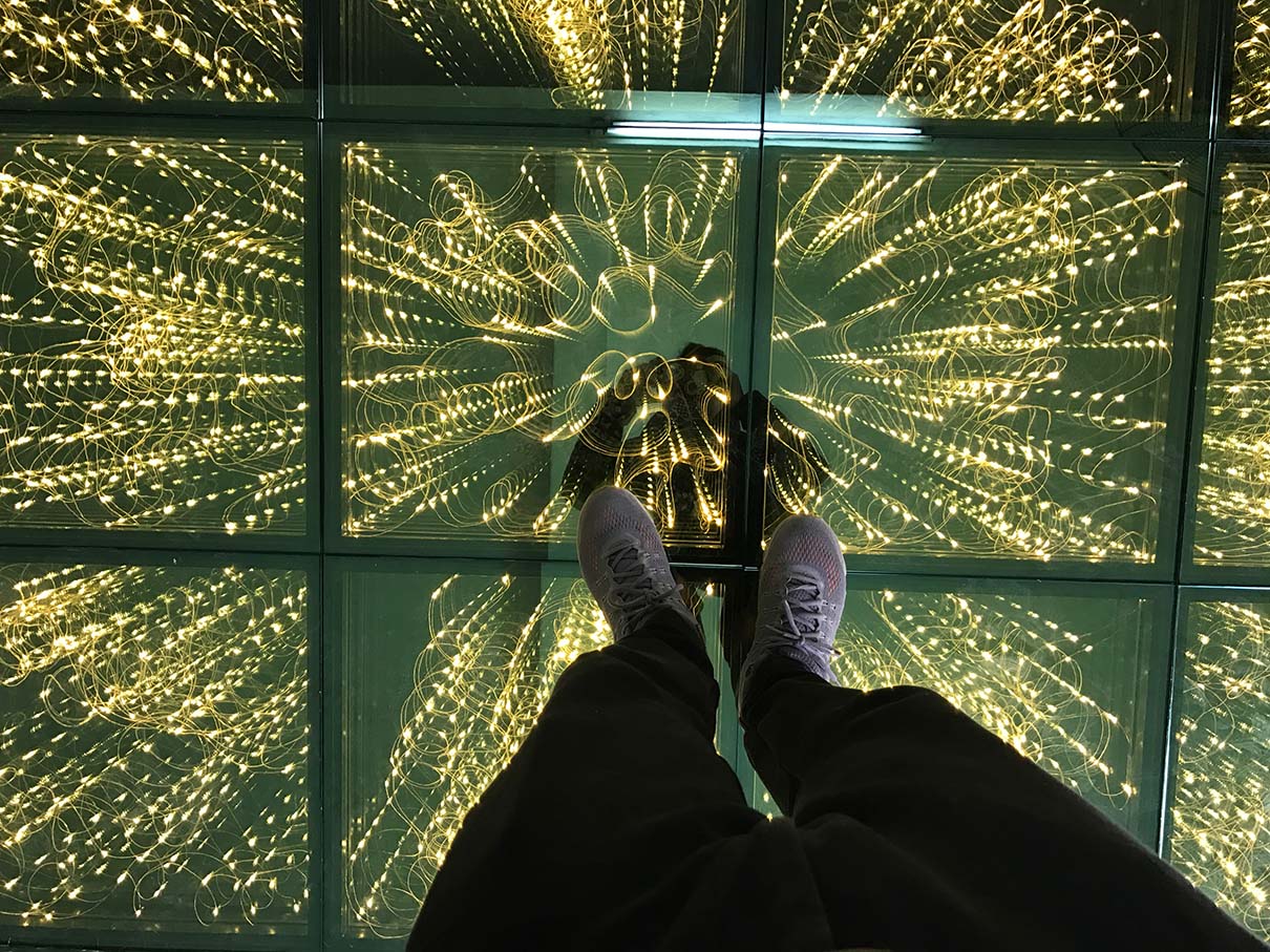 The 3D version integrates infinity-mirror panels and programmable LED strips to change overall floor color and motion, delivering strong stage presence and cinematic depth.
